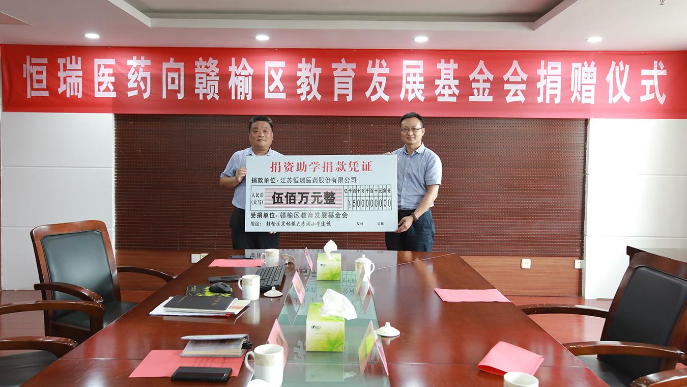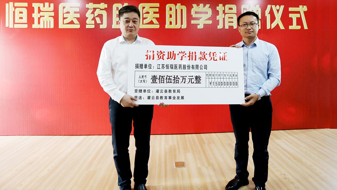 恒瑞醫藥向連云港市灌云縣捐贈助醫助學基金300萬元。