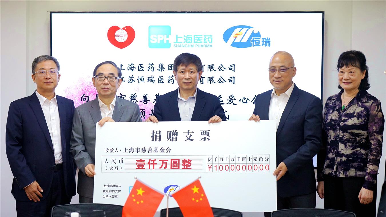 恒瑞醫藥聯合上海醫藥,分別向上海市慈善基金會捐贈500萬元,共同設立“尚遠愛心公益”專項基金。