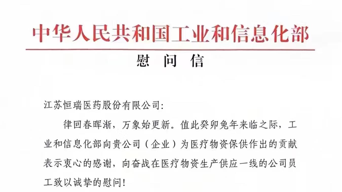 恒瑞醫藥馳援新冠疫情防控累計捐贈善款及防護物資價值超過3000萬元。