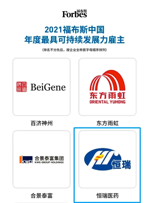 恒瑞醫藥入選福布斯中國最佳雇主榜單 可持續發展能力獲認可