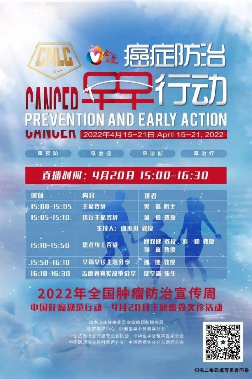 在(zai)今年的腫(zhong)瘤防治(zhi)宣傳(chuan)周(zhou)期間,由恒瑞醫(yi)藥(yao)“全力去愛(ai)”患(huan)(huan)者(zhe)關愛(ai)公益品牌(pai)支持的中(zhong)國肝(gan)(gan)癌(ai)(ai)規(gui)范(fan)行動(dong)——CNLC規(gui)范(fan)患(huan)(huan)教(jiao)義(yi)診活(huo)動(dong)將(jiang)于4月20日在(zai)線(xian)(xian)上(shang)(shang)舉行。中(zhong)國科學(xue)院院士、復(fu)旦大學(xue)附屬(shu)中(zhong)山(shan)醫(yi)院院長(chang)(chang)、上(shang)(shang)海(hai)市肝(gan)(gan)病研究(jiu)所所長(chang)(chang)樊嘉,復(fu)旦大學(xue)附屬(shu)中(zhong)山(shan)醫(yi)院副院長(chang)(chang)、上(shang)(shang)海(hai)市徐匯區中(zhong)心(xin)(xin)醫(yi)院院長(chang)(chang)、復(fu)旦大學(xue)附屬(shu)中(zhong)山(shan)醫(yi)院肝(gan)(gan)臟外科主任、復(fu)旦大學(xue)肝(gan)(gan)癌(ai)(ai)研究(jiu)所常務副所長(chang)(chang)周(zhou)儉分別(bie)作為會議(yi)主席和(he)執行主席為義(yi)診活(huo)動(dong)致辭。來自復(fu)旦大學(xue)附屬(shu)中(zhong)山(shan)醫(yi)院的多名肝(gan)(gan)癌(ai)(ai)治(zhi)療(liao)領域臨床專家(jia)(jia)為患(huan)(huan)者(zhe)線(xian)(xian)上(shang)(shang)答疑(yi),傳(chuan)遞肝(gan)(gan)癌(ai)(ai)早篩早診核心(xin)(xin)知識要點,同(tong)時(shi)為上(shang)(shang)海(hai)疫情期間的肝(gan)(gan)癌(ai)(ai)患(huan)(huan)者(zhe)居家(jia)(jia)照護和(he)線(xian)(xian)上(shang)(shang)隨(sui)訪(fang)配藥(yao)提供全面的悉心(xin)(xin)指導(dao)。