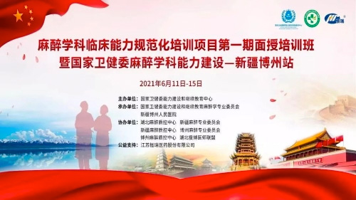 本次培訓(xun)班由國(guo)家衛健(jian)委(wei)能力(li)(li)建設和繼(ji)續(xu)(xu)教(jiao)(jiao)育中(zhong)心(xin)(xin)主辦(ban),國(guo)家衛健(jian)委(wei)能力(li)(li)建設和繼(ji)續(xu)(xu)教(jiao)(jiao)育麻醉(zui)學專業委(wei)員(yuan)會、博州(zhou)人民醫(yi)(yi)院承辦(ban),湖北麻醉(zui)質控中(zhong)心(xin)(xin)、新疆麻醉(zui)專業委(wei)員(yuan)會和湖北援疆醫(yi)(yi)生聯盟(meng)等(deng)共(gong)同協辦(ban)。江蘇恒瑞醫(yi)(yi)藥股份(fen)有限公司公益支持。該(gai)培訓(xun)旨在響應國(guo)家關(guan)于“加強臨床能力(li)(li)規范化培訓(xun),全(quan)心(xin)(xin)全(quan)意為人民健(jian)康服務”的號(hao)召(zhao),致力(li)(li)于推進基(ji)層醫(yi)(yi)院能力(li)(li)建設。