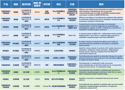 在(zai)頭(tou)頸腫瘤領(ling)域,卡(ka)瑞利珠(zhu)單(dan)抗、阿(a)帕替尼、法(fa)米(mi)替尼、SHR1701等(deng)藥(yao)物的單(dan)藥(yao)或聯(lian)合方案研究(jiu)入選1篇(pian)壁報討論、7項(xiang)壁報,3項(xiang)線上發(fa)表。