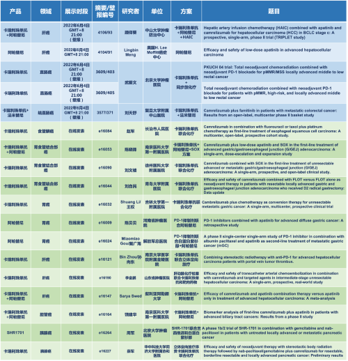 消化道(dao)領域,四款創新藥物實現食管、胃、腸、肝、膽和(he)胰(yi)腺等消化道(dao)腫瘤全覆蓋(gai)。卡(ka)瑞(rui)利珠單抗和(he)阿(a)帕替(ti)尼,以及未上市創新藥法米(mi)替(ti)尼和(he)SHR1701在消化道(dao)的研究共入選5項(xiang)壁報展示和(he)13項(xiang)線上發(fa)表,可謂碩果累(lei)累(lei)。
