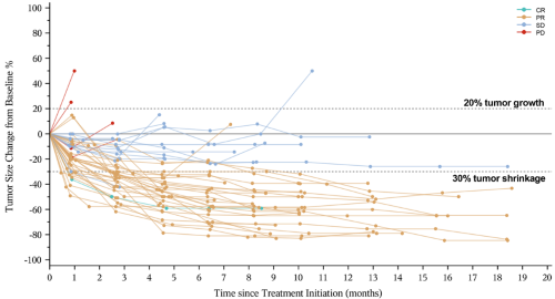 圖3.不同受試者隨時間變化的腫瘤負荷