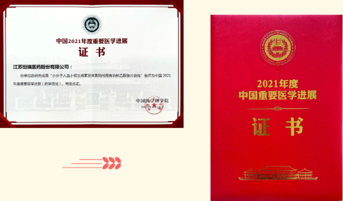 喜訊!恒瑞醫藥海曲泊帕獲批上市入選中國2021年度重要醫學進展