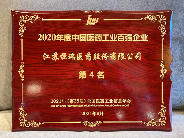 8月1日,2021年(第38屆)全國(guo)醫(yi)藥(yao)工(gong)(gong)(gong)(gong)業(ye)(ye)(ye)(ye)(ye)信息年會在(zai)濟南舉行。會上發布了備受矚目的(de)“2020年度中(zhong)國(guo)醫(yi)藥(yao)工(gong)(gong)(gong)(gong)業(ye)(ye)(ye)(ye)(ye)百強榜(bang)”及(ji)系列分榜(bang)單,恒瑞醫(yi)藥(yao)獲得(de)2020年度中(zhong)國(guo)醫(yi)藥(yao)工(gong)(gong)(gong)(gong)業(ye)(ye)(ye)(ye)(ye)百強企(qi)業(ye)(ye)(ye)(ye)(ye)第四(si)名,這是自2016年的(de)第十(shi)七名以來,公司排(pai)名連續5年穩步躍升;同時,在(zai)2021年中(zhong)國(guo)醫(yi)藥(yao)研發產品(pin)線最(zui)佳工(gong)(gong)(gong)(gong)業(ye)(ye)(ye)(ye)(ye)企(qi)業(ye)(ye)(ye)(ye)(ye)榜(bang)單中(zhong),恒瑞醫(yi)藥(yao)穩居榜(bang)首。
