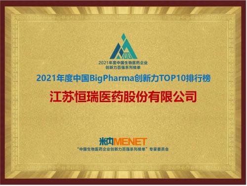 9月16日(ri),由米內網(wang)主(zhu)辦的“2021年度(du)中國生物(wu)醫(yi)藥企業(ye)(ye)創新力百強系列榜單”發布會在線(xian)上舉辦。恒瑞醫(yi)藥繼去年登頂“中國BigPharma企業(ye)(ye)創新力TOP10排行(xing)榜”后,今年再次名列該(gai)榜單首位。