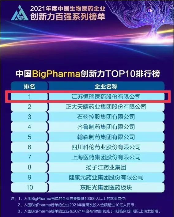 蟬聯榜首!恒瑞醫藥再次登頂“中國BigPharma企業創新力TOP10排行榜”