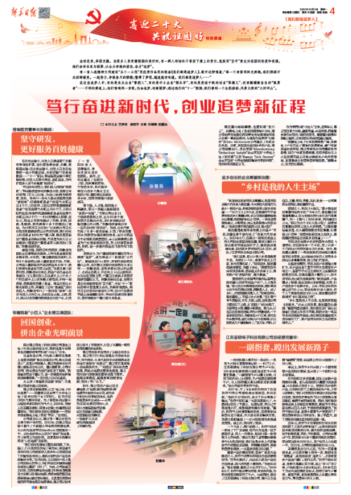 10月3日(ri),新華日(ri)報“喜迎二十大(da) 共祝祖國(guo)好”特別(bie)報道刊發(fa)(fa)《篤行奮(fen)進新時(shi)代,創業(ye)追夢新征程(cheng)》,重點關(guan)注(zhu)恒瑞(rui)(rui)醫(yi)藥(yao)等企業(ye)的發(fa)(fa)展(zhan)成果和奮(fen)斗(dou)愿(yuan)景(jing),并(bing)采訪了恒瑞(rui)(rui)醫(yi)藥(yao)董事長孫飄揚。現將相關(guan)內容選登。