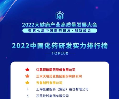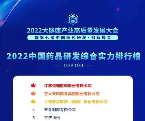12月9日,由藥(yao)(yao)(yao)智網、中(zhong)(zhong)國藥(yao)(yao)(yao)業雜志(zhi)社聯(lian)合承(cheng)辦的(de)2022大健康產業高質量(liang)發(fa)(fa)(fa)展大會(hui)暨第七屆中(zhong)(zhong)國醫(yi)(yi)藥(yao)(yao)(yao)研(yan)(yan)(yan)發(fa)(fa)(fa) · 創新峰(feng)會(hui)開(kai)幕,會(hui)上(shang)“2022中(zhong)(zhong)國藥(yao)(yao)(yao)品研(yan)(yan)(yan)發(fa)(fa)(fa)實(shi)(shi)力(li)排(pai)行(xing)(xing)榜(bang)(bang)(bang)(bang)(bang)”系列榜(bang)(bang)(bang)(bang)(bang)單發(fa)(fa)(fa)布,憑(ping)借(jie)卓越的(de)創新研(yan)(yan)(yan)發(fa)(fa)(fa)實(shi)(shi)力(li),恒(heng)瑞(rui)醫(yi)(yi)藥(yao)(yao)(yao)榮登2022“中(zhong)(zhong)國藥(yao)(yao)(yao)品研(yan)(yan)(yan)發(fa)(fa)(fa)綜合實(shi)(shi)力(li)排(pai)行(xing)(xing)榜(bang)(bang)(bang)(bang)(bang)TOP100”、“中(zhong)(zhong)國化(hua)藥(yao)(yao)(yao)研(yan)(yan)(yan)發(fa)(fa)(fa)實(shi)(shi)力(li)排(pai)行(xing)(xing)榜(bang)(bang)(bang)(bang)(bang)TOP100”、“中(zhong)(zhong)國生物藥(yao)(yao)(yao)研(yan)(yan)(yan)發(fa)(fa)(fa)實(shi)(shi)力(li)排(pai)行(xing)(xing)榜(bang)(bang)(bang)(bang)(bang)TOP50”三個榜(bang)(bang)(bang)(bang)(bang)單榜(bang)(bang)(bang)(bang)(bang)首(shou)。其(qi)中(zhong)(zhong),恒(heng)瑞(rui)醫(yi)(yi)藥(yao)(yao)(yao)已經是(shi)第5年蟬聯(lian)《2022中(zhong)(zhong)國藥(yao)(yao)(yao)品研(yan)(yan)(yan)發(fa)(fa)(fa)綜合實(shi)(shi)力(li)排(pai)行(xing)(xing)榜(bang)(bang)(bang)(bang)(bang)》“總榜(bang)(bang)(bang)(bang)(bang)”冠軍。