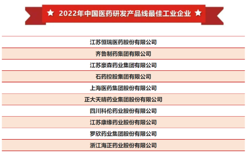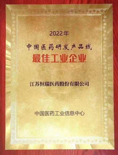 恒瑞(rui)醫(yi)(yi)藥(yao)憑借長期積累的(de)綜合(he)競爭力和(he)業(ye)(ye)界領先的(de)研(yan)發(fa)(fa)實力,多年入(ru)選全國(guo)醫(yi)(yi)藥(yao)工(gong)業(ye)(ye)信息年會系列榜單。今年的(de)大(da)會上(shang),公司繼續位列中國(guo)醫(yi)(yi)藥(yao)工(gong)業(ye)(ye)百強企(qi)業(ye)(ye)前十,并穩居“2022年中國(guo)醫(yi)(yi)藥(yao)研(yan)發(fa)(fa)產品線最佳工(gong)業(ye)(ye)企(qi)業(ye)(ye)”榜首。