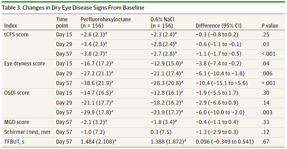 該研究(jiu)的主要結(jie)果發現,在(zai)有(you)效性(xing)方(fang)面,第(di)57天SHR8058滴(di)(di)眼(yan)(yan)液(ye)(ye)(ye)組(zu)(zu)(zu)的tCFS評(ping)分(fen)(p < 0.001)和(he)(he)眼(yan)(yan)干(gan)(gan)(gan)評(ping)分(fen)(p < 0.001)較基(ji)線(xian)的變化優于對(dui)照(zhao)組(zu)(zu)(zu)。tCFS評(ping)分(fen)和(he)(he)眼(yan)(yan)干(gan)(gan)(gan)評(ping)分(fen)分(fen)別在(zai)第(di)29天和(he)(he)第(di)15天開始改善(shan),并持續(xu)到第(di)57天。與對(dui)照(zhao)組(zu)(zu)(zu)相比,SHR8058滴(di)(di)眼(yan)(yan)液(ye)(ye)(ye)組(zu)(zu)(zu)有(you)效緩(huan)解干(gan)(gan)(gan)眼(yan)(yan)癥狀(zhuang),包括疼(teng)痛(p = 0.003)、干(gan)(gan)(gan)眼(yan)(yan)癥癥狀(zhuang)意(yi)識(p < 0.001),干(gan)(gan)(gan)燥頻率(p < 0.001)等(deng)。在(zai)安(an)全性(xing)方(fang)面,SHR8058滴(di)(di)眼(yan)(yan)液(ye)(ye)(ye)組(zu)(zu)(zu)患者治療期出現的不良(liang)事件(jian)(TEAE)和(he)(he)眼(yan)(yan)部(bu)TEAE少(shao)于對(dui)照(zhao)組(zu)(zu)(zu)。此外,SHR8058滴(di)(di)眼(yan)(yan)液(ye)(ye)(ye)組(zu)(zu)(zu)和(he)(he)對(dui)照(zhao)組(zu)(zu)(zu)患者分(fen)別有(you)95.5%(149/156)和(he)(he)98.7%(154/156)報告依從(cong)性(xing)良(liang)好。SHR8058滴(di)(di)眼(yan)(yan)液(ye)(ye)(ye)組(zu)(zu)(zu)平均(jun)滿意(yi)度評(ping)分(fen)(p < 0.001)和(he)(he)繼續(xu)使用(yong)意(yi)愿評(ping)分(fen)(p < 0.001)高(gao)于對(dui)照(zhao)組(zu)(zu)(zu)。
