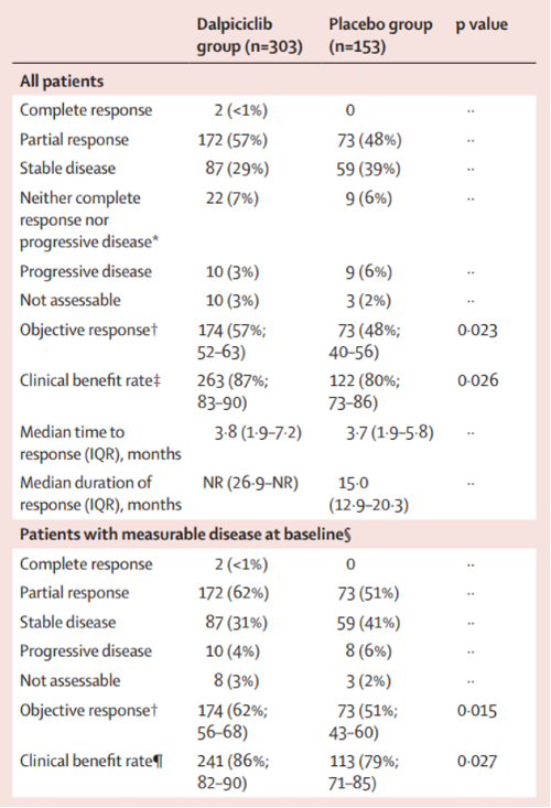 2. Xu B, et al. DAWNA-1 Study Consortium. Dalpiciclib or placebo plus fulvestrant in hormone receptor-positive and HER2-negative advanced breast cancer: a randomized, phase 3 trial. Nat Med. 2021 Nov;27(11):1904-1909.