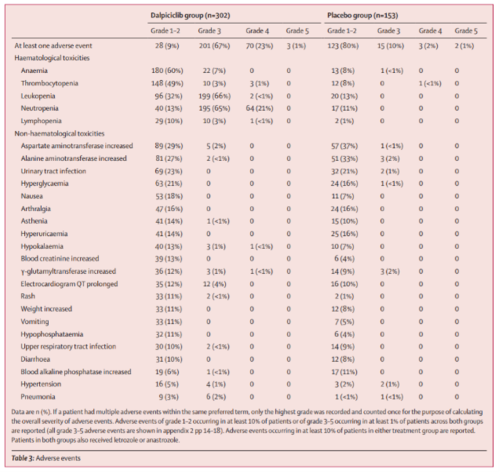 研究組(zu)的(de)主要不(bu)良(liang)(liang)反(fan)應為(wei)血液(ye)學不(bu)良(liang)(liang)反(fan)應。其類(lei)型單一,易處理,并且與CDK4/6抑制劑的(de)已(yi)知不(bu)良(liang)(liang)反(fan)應一致。