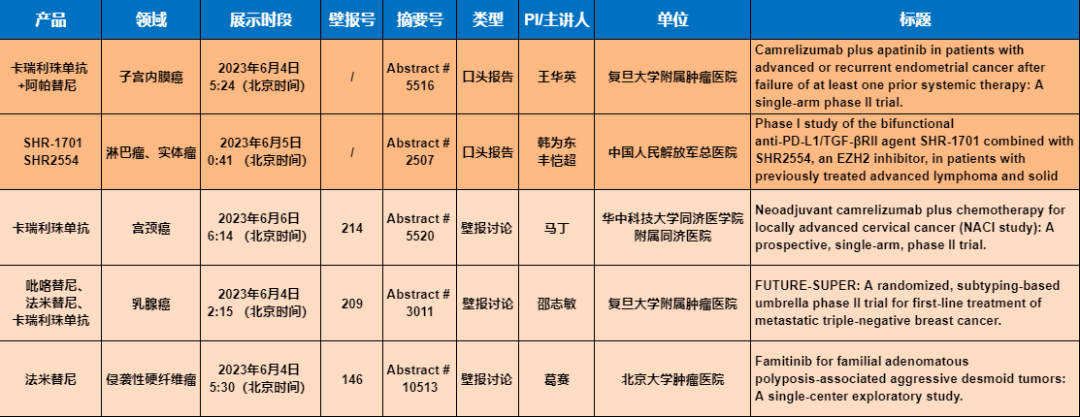 (2023 ASCO年會,恒瑞醫藥產品相關研究兩項入選口頭報告,三項入選壁報討論)