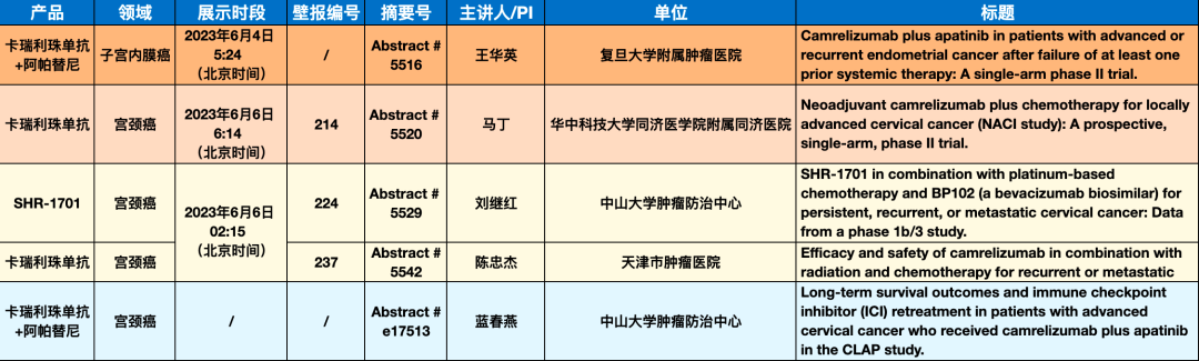 [2] Camrelizumab plus apatinib in patients with advanced or recurrent endometrial cancer after failure of at least one prior systemic therapy: A single-arm phase II trial. ASCO 2023:Oral abstract 5516.