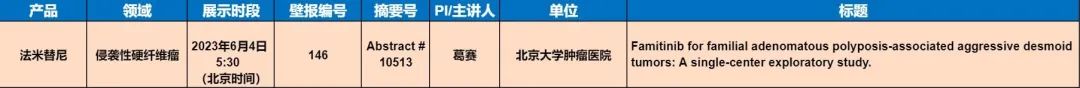 由北(bei)京大學腫瘤醫院的(de)(de)葛(ge)賽教(jiao)授作為主要研究(jiu)者的(de)(de)法(fa)米替尼治療家族性(xing)腺瘤性(xing)息肉病(FAP)相(xiang)關的(de)(de)侵襲性(xing)硬纖維瘤(DT)的(de)(de)單中(zhong)心探索性(xing)研究(jiu)入選(xuan)壁報討論。