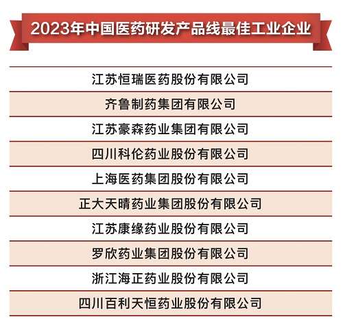 連續11年!恒瑞醫藥再蟬聯“中國醫藥研發產品線最佳工業企業”榜首