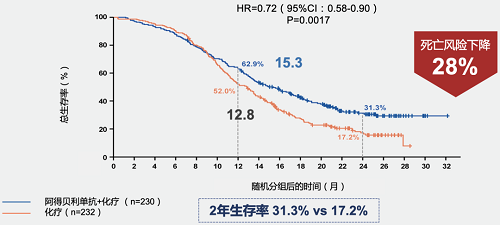 ▲ 阿得貝利單抗聯合化療(liao)一線治療(liao)mOS達15.3個(ge)月,顯著優于單純化療(liao)