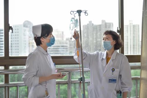 ▲劉海燕,山東第一醫科大(da)學第二附屬醫院腫(zhong)瘤科副主任、化療病區主任(左)