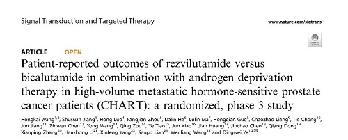 [3] Wang, H., Jiang, S., Luo, H. et al. Patient-reported outcomes of rezvilutamide versus bicalutamide in combination with androgen deprivation therapy in high-volume metastatic hormone-sensitive prostate cancer patients (CHART): a randomized, phase 3 study. Sig Transduct Target Ther 9, 351 (2024). //doi.org/10.1038/s41392-024-02064-z