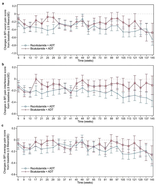 ● BPI-SF結果顯示,瑞維魯胺+ADT組患者疼痛緩解更顯著