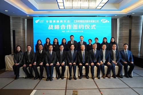 2025年(nian)2月10日(ri)上(shang)午,中國(guo)胰(yi)腺病學會與江(jiang)蘇恒瑞醫藥(yao)股份(fen)有(you)限公(gong)司(以下簡稱“恒瑞醫藥(yao)”)戰略合作簽(qian)約儀式在京舉行。中國(guo)胰(yi)腺病學會會長(chang)趙玉(yu)沛院(yuan)士與恒瑞醫藥(yao)戴洪斌總裁(cai)等領導出(chu)席了本次(ci)活動。
