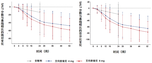 圖4.研究期間SALT分數與基線相比(bi)的絕對變(bian)(bian)化(hua)和百分比(bi)變(bian)(bian)化(hua)