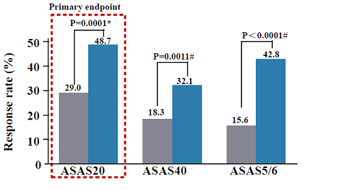 圖1.艾瑪昔替(ti)尼(ni)組與安慰劑組ASAS20、ASAS40和(he)ASAS5/6應答情況