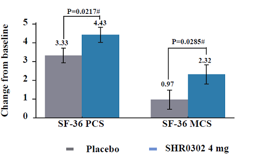 圖3.艾瑪昔替尼組與安慰劑(ji)組SF-36 PCS和MCS較基(ji)線變化情況