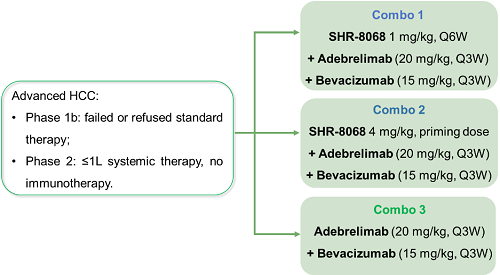 本項多(duo)中心、開放標簽、1b/2期(qi)的研究(NCT05444088)旨在評估SHR-8068聯合抗(kang)(kang)(kang)PD-L1抗(kang)(kang)(kang)體阿(a)得貝利單抗(kang)(kang)(kang)和貝伐珠單抗(kang)(kang)(kang)治療(liao)晚(wan)期(qi)HCC的療(liao)效和安全性。