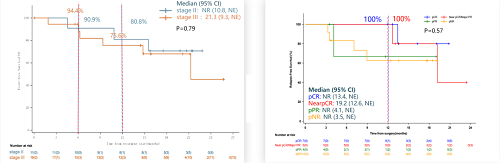 圖4. 三藥(yao)圍術期治療基(ji)于(yu)病理(li)分期的EFS(左)