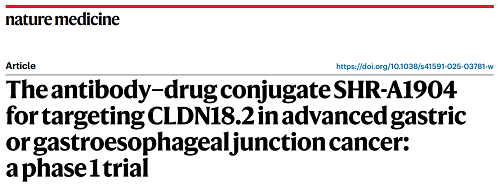恒瑞醫藥CLDN18.2 ADC創新藥SHR-A1904治療胃癌臨床研究結果榮登Nature Medicine