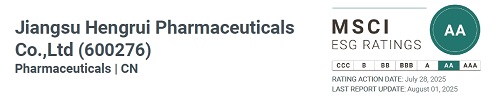 喜訊!恒瑞醫藥榮獲MSCI ESG“AA”評級