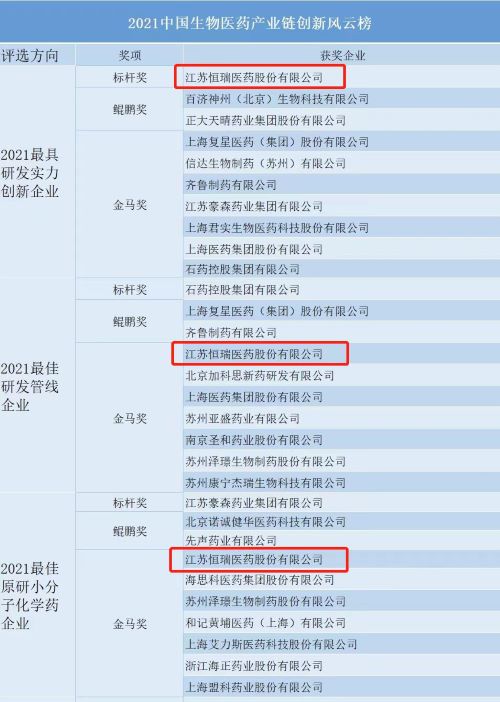 引領創新風云,樹立行業標桿 | 恒瑞醫藥獲“2021最具研發實力創新企業”標桿獎