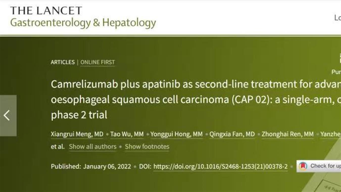 喜(xi)訊!恒瑞醫(yi)藥卡瑞利珠(zhu)單抗食(shi)管(guan)癌研究再登國際頂級醫(yi)學期(qi)刊