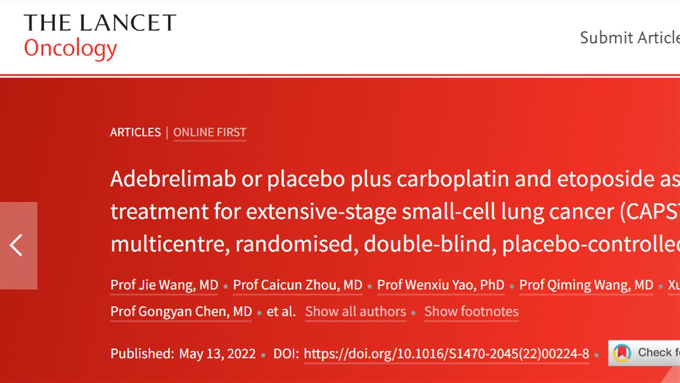“雙艾”組合聯(lian)合誘導化(hua)療用于廣泛期(qi)小細胞(bao)肺癌的創(chuang)新性研究(jiu)成果(guo)登(deng)上《STTT》